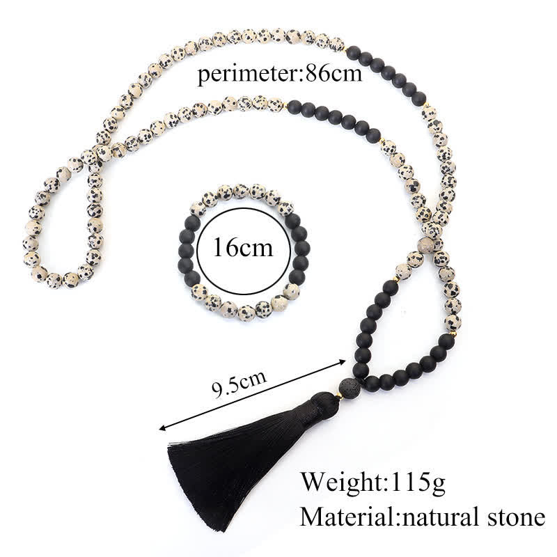 108 Mala Beads Zebra Jasper Frosted Stone Protection Tassel Bracelet (Extra 30% Off | USE CODE: FS30)