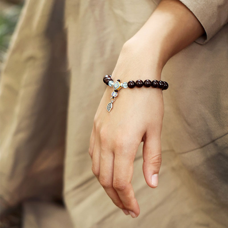 - Material: Small Leaf Red Sandalwood, Aquamarine, 925 Sterling Silver