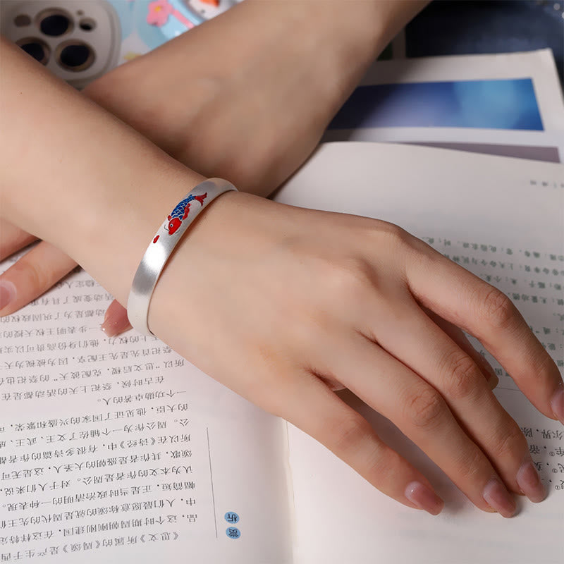 Buddha Stones 999 Sterling Silver Koi Fish Luck Cuff Bracelet Bangle