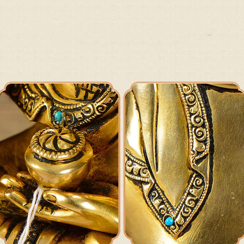 Elevate your space with the Shakyamuni Compassion Copper Statue, a symbol of serenity and enlightenment. Crafted with intricate attention to detail, this statue depicts Gautama Buddha’s significant gesture of touching the earth to witness his transcendence. The right hand extended down symbolizes his victory over Mara, while the left hand, holding an alms bowl, exudes meditative calm. This statue serves as a reminder of compassion and the path to fulfillment and self-realization.💕