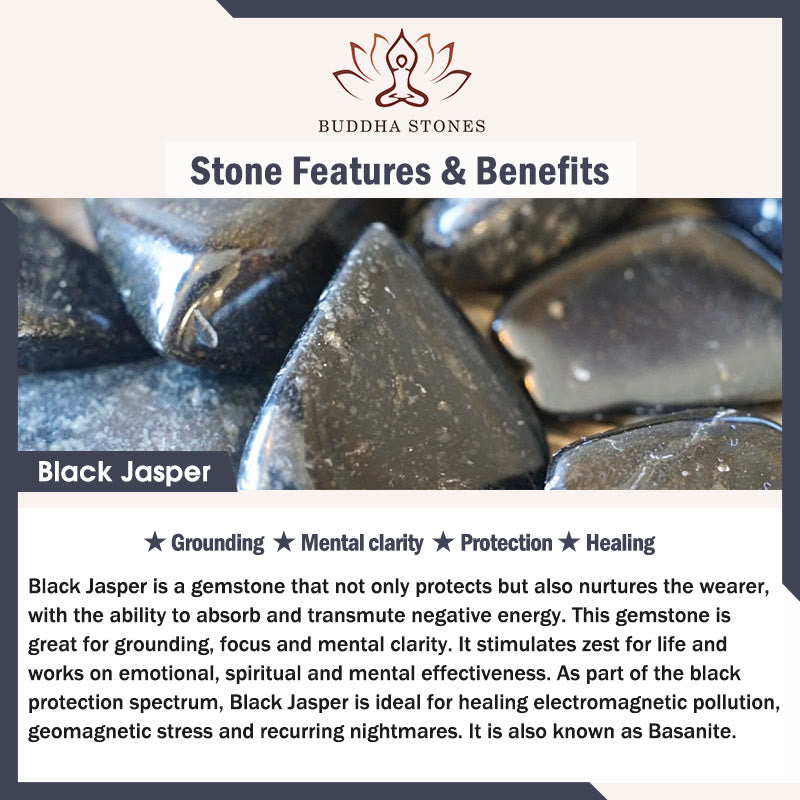 Black Jasper is a gemstone that not only protects but also nurtures the wearer, with the ability to absorb and transmute negative energy. This gemstone is great for grounding, focus and mental clarity. It stimulates zest for life and works on emotional, spiritual and mental effectiveness. As part of the black protection spectrum, Black Jasper is ideal for healing electromagnetic pollution, geomagnetic stress and recurring nightmares. It is also known as Basanite.