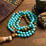 Turquoise Picture Jasper Bracelet features 108 natural beads made from turquoise and picture jasper, symbolizing harmony and emotional stability. The bracelet includes a tassel that adds a touch of spiritual significance, representing balance and grounding. Turquoise is known for its healing properties, while picture jasper encourages strength and peace. This bracelet is ideal for those seeking tranquility and positive energy in their lives.💕