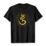 A Mala on a T-shirt! Featuring 108 repetitions of the mantra “Om Namah Shivaya.” The number 108 corresponds to the beads on a mala, traditionally used for counting mantra recitations. Protect yourself with the power of this sacred mantra!