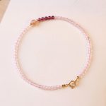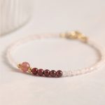 Rose Quartz Healing Energy Bracelet features ultra-thin beads of Rose Quartz, Garnet, and a larger Strawberry Quartz bead. Rose Quartz is known for its association with love and harmony, while Garnet promotes vitality and passion. The Strawberry Quartz bead adds a touch of warmth and joy. This bracelet is designed to promote healing, emotional balance, and positive energy flow.💕
