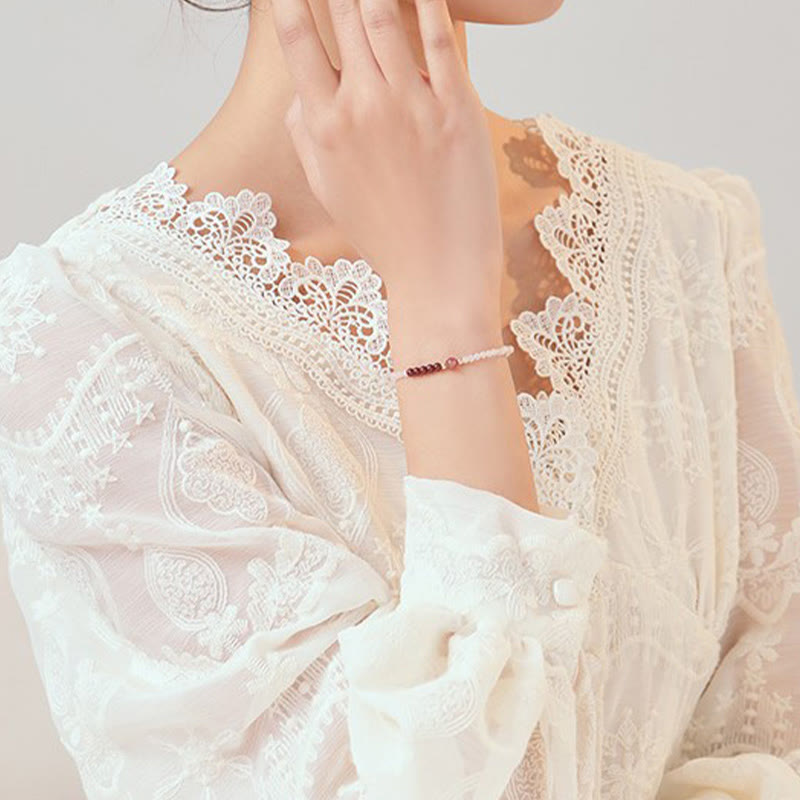 - Material: Rose Quartz, Garnet, Strawberry Quartz, Copper Alloy