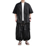 Be the first to review “Buddha Stones 2Pcs Black Frog-Button Cotton Men’s Kimono Jacket Drawstring Wide Leg Pants With Pockets”