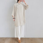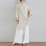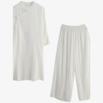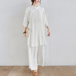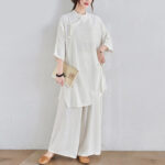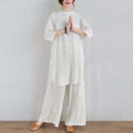 Be the first to review “Buddha Stones 2Pcs Plain Design Zen Tai Chi Meditation Clothing Cotton Linen Top Pants Women’s Set”