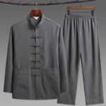 Be the first to review “Buddha Stones 2Pcs Plain Tang Suit Men’s Frog-Button Long Sleeve Shirt Pants Set”