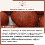 Goldstone is called the stone of ambition and is thought to assist in attaining goals. It is a gemstone that dispels negative energy that brings bad luck, revitalizes the wearer, and encourages a positive attitude.
