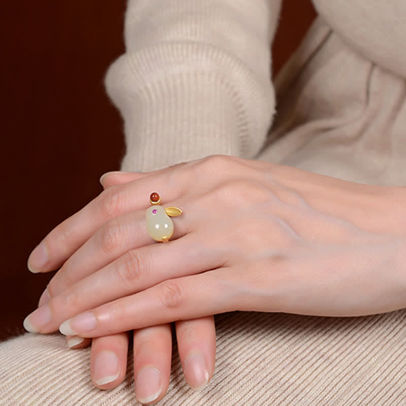 - Material: Hetian Jade, 925 Sterling Silver Plated Gold, Red Agate