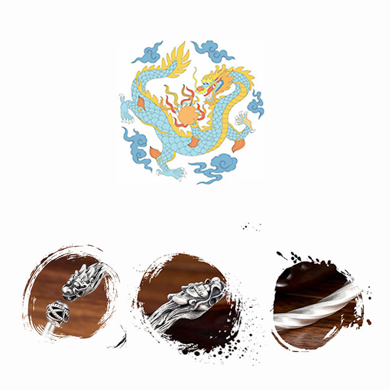 Buddha Stones 999 Sterling Silver Year of the Dragon Luck Strength Metal Cuff Bracelet Bangle Bracelet Bangle BS 2