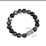 Buddha Stones 999 Sterling Silver FengShui PiXiu Natural Black Obsidian 925 Sterling Silver Bead Strength Bracelet Bracelet BS 3