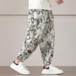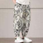 - Design: These Men‘s harem pants featuring bamboo leaf patterns offer a design that combines cultural symbolism with modern style, embodying qualities like resilience and elegance, while providing a unique fusion of traditional aesthetics and contemporary comfort.