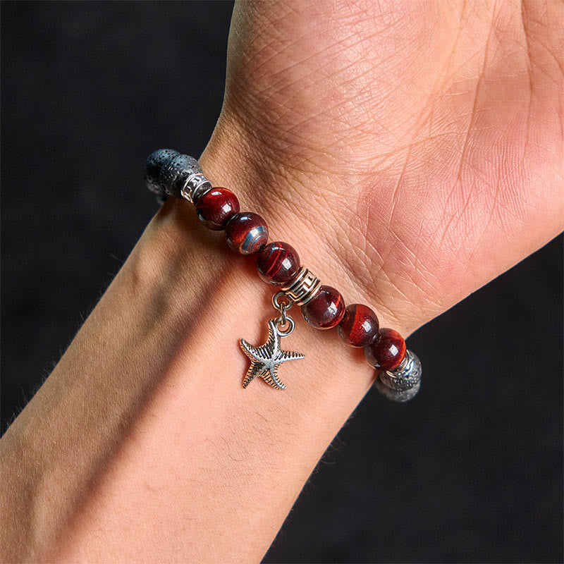 - Material: Lava Rock, Tiger Eye, Red Agate, Amethyst, Pink Crystal, Blue Turquoise, Alloy, Rope