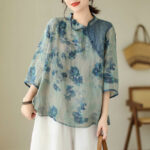 Blue Jacaranda Flower shirt features an elegant floral design, symbolizing beauty and tranquility. This three-quarter sleeve shirt is crafted from soft ramie linen, offering both comfort and style. Ideal for those who appreciate nature-inspired designs and seek a serene addition to their wardrobe. The breathable fabric ensures all-day comfort.💕