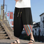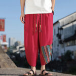 - Design: These Men‘s wide leg pants featuring ethnic floral patterns offer a design that celebrates cultural heritage and traditional aesthetics, blending vibrant colors and motifs to create a unique and visually striking garment that reflects a connection to diverse cultural influences.