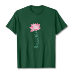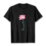 BREATHE Lotus Tee promotes mindfulness and relaxation with its calming message. Made from soft, breathable fabric, this tee offers comfort while encouraging deep, restorative breathing. The lotus design symbolizes purity and enlightenment, making it perfect for meditation. Ideal for those seeking to incorporate mindfulness practices into their daily lives and cultivate a sense of inner peace.