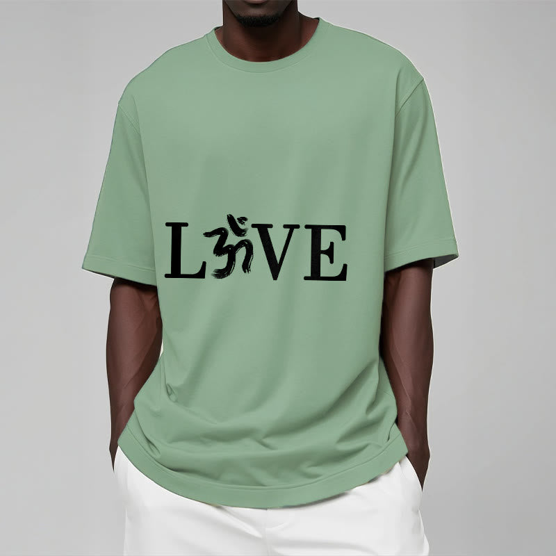 - DESIGN INSPIRATION: This T-shirt design creatively incorporates the letters “L” and “V” with the sacred Sanskrit Om symbol placed between them, symbolizing a harmonious blend of love and spiritual unity. The Om represents the universe’s primal sound and consciousness, infusing the design with meanings of peace, oneness, and enlightenment.