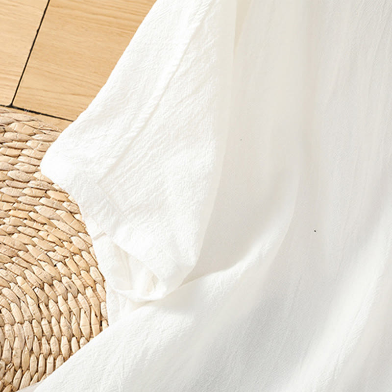 Buddha Stones Casual Plain Buttons Half Sleeve Women’s Cotton Linen Shirt With Pocket