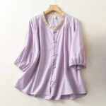 Women’s Ruffle Collar Half Sleeve Shirt combines classic design with a touch of elegance. The frog-button closure and ruffle collar add a unique, charming detail, while the breathable cotton-linen fabric ensures comfort. With a relaxed fit, this shirt is perfect for those seeking a blend of tradition, creativity, and everyday comfort. Ideal for casual outings or moments of quiet reflection.💕
