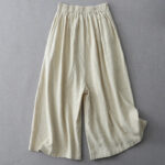 Buddha Stones Casual Plain Loose 7-8 Length Women’s Polyester Wide Leg Pants With Pockets