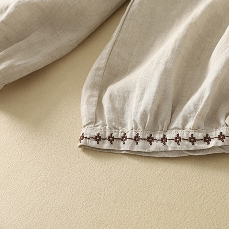 Buddha Stones Casual Retro Drawstring Embroidery Design Women’s Cotton Linen 7-8 Length Pants With Pockets