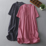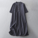 Be the first to review “Buddha Stones Casual Retro Solid Color Button Ruffled Crew Neck Design Short Sleeve Cotton Linen Midi Dress With Pockets”