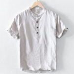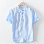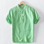 Be the first to review “Buddha Stones Solid Color Half Button Design Stand Collar Men’s Short Sleeve Cotton Linen Shirt”