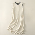 Be the first to review “Buddha Stones Casual Stitching Color Handmade Button Design Midi Dress Polyester Sleeveless Dress With Pockets”