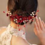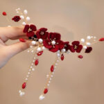 Symbolic Meaning: The combination of roses and pearls in a hair accessory symbolizes a blend of love, elegance, and purity. Roses often represent love and passion, while pearls signify innocence and refinement.