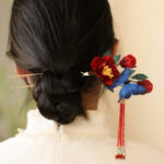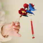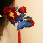 Symbolic Meaning: This hair accessory combines red flowers, often symbolizing love and passion, with blue butterflies, which represent transformation, creativity, and good fortune. Together, they convey a message of positive change and emotional growth, symbolizing hope and renewal.