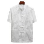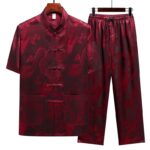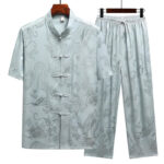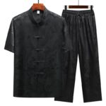 Dragon Pattern Tang Suit Men’s set merges traditional design with modern comfort. This Hanfu uniform features a striking dragon pattern, short sleeve top, and matching pants. Made from high-quality fabric, it provides both elegance and ease of movement. Ideal for those who appreciate cultural heritage, this set is perfect for special occasions or everyday wear, symbolizing strength and nobility.💕
