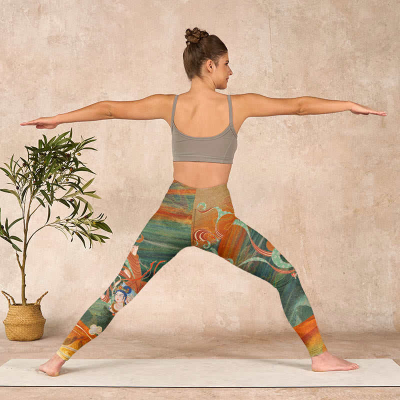 Buddha Stones Dunhuang Flying Apsaras Print Gym Leggings Women’s Yoga Pants