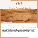 The camphor wood is valued for its fragrant aroma, believed to purify the air and uplift the spirit. Its refreshing scent is thought to enhance mental clarity and focus, making it ideal for study and meditation spaces. Additionally, the wood’s enduring strength symbolizes perseverance and resilience, often representing the ability to overcome challenges with grace.