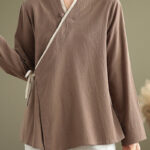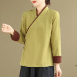 Fall Hanfu Women’s Shirt features a long-sleeve design with a delicate lace-up closure. Made from breathable fabric, it offers both comfort and flexibility. The traditional Hanfu-inspired design reflects harmony and balance, making it an ideal choice for mindful practices. This shirt provides a relaxed fit, allowing for ease of movement while embodying elegance and cultural significance.💕