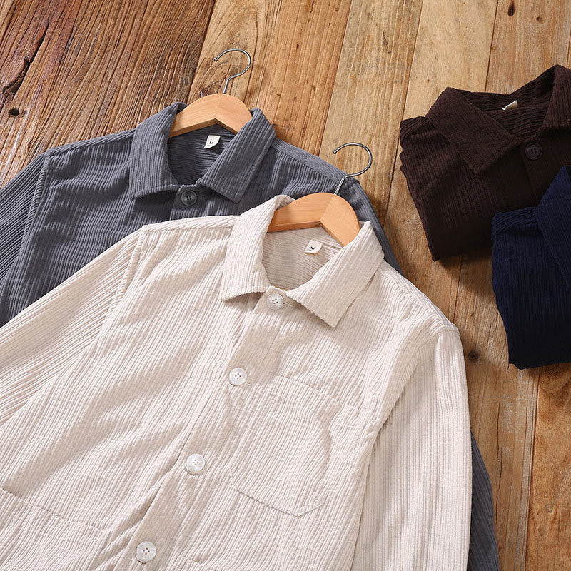 Buddha Stones Fall Lapel Design Long Sleeve Button Men’s Jacket With Pockets