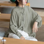 Frog-Button Long Sleeve shirt is designed for Zen, Tai Chi, and meditation practices. This Hanfu-style jacket features traditional frog buttons and a relaxed fit, made from comfortable, breathable fabric. The design promotes calm and balance, helping you focus on your practice and maintain tranquility during meditation or Tai Chi sessions.💕