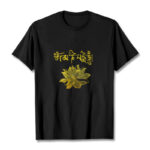 - Swastika卍 Symbol: This T-shirt featuring a lotus flower symbol and the Sanskrit phrase “ཨོཾ་མ་ཎི་པ་དྨེ་ཧཱུྃ།” embodies themes of purity, enlightenment, and spiritual awakening. The lotus represents resilience and beauty rising from adversity, while the mantra signifies compassion and the path to liberation, making this design a profound reminder of inner strength and spiritual growth.