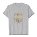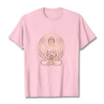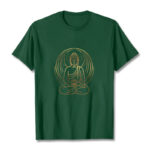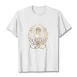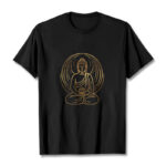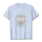 • DESIGN INSPIRATION: This T-shirt design features a Buddha figure with a golden halo behind, holding a lotus flower. The golden halo, known as the “backlight,” symbolizes the Buddha’s wisdom, enlightenment, and spiritual purity, representing the radiant light of wisdom that dispels doubt and obstacles. The lotus flower signifies purity and spiritual awakening in Buddhist tradition.