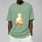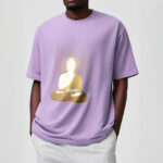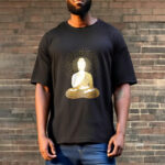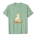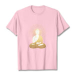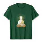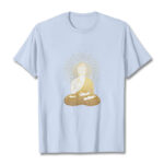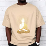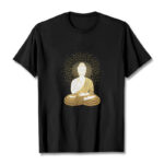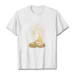 - DESIGN INSPIRATION: This T-shirt design features a golden Buddha in meditation with radiant golden light behind him, symbolizing spiritual enlightenment, divine wisdom, and the illumination of the mind. The golden light represents purity, transcendence, and the awakening of inner peace and clarity.