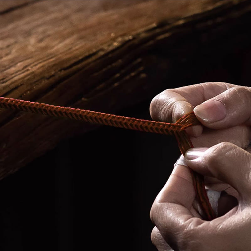 The eight-strand braid is evolved from the four-strand braid, the threads are intertwined, mutual generation and restraint, and samsara rotation, symbolizing life’s love and hatred, joy, anger, sorrow, and joy.