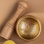 - Knock the bowl with our wooden striker on the bowl’s rim or body