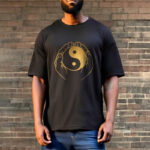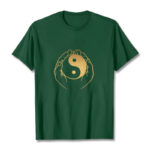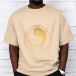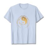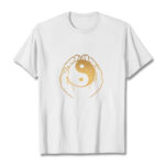 - DESIGN INSPIRATION: This T-shirt design featuring hands holding a golden Yin-Yang symbol represents the harmonious balance of opposing forces—such as light and dark, active and passive, or masculine and feminine—embodying the ancient Chinese philosophy that all things in the universe are interconnected and continuously transforming through the dynamic interplay of Yin and Yang. The golden color adds symbolism of value, purity, and prosperity, emphasizing the precious and vital nature of this cosmic balance.