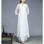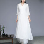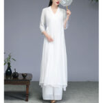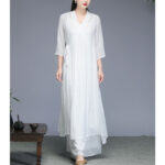 Hanfu Style Midi dress features a traditional design with wide leg pants, perfect for meditation, Zen practice, yoga, and dance. Crafted for comfort and ease of movement, this clothing set promotes a serene and balanced mindset. The flowing fabric and loose fit ensure you stay comfortable during your practice, enhancing your overall sense of tranquility.💕