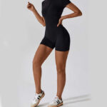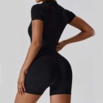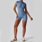 Buddha Stones High Stretch Zipper Short Sleeve Jumpsuit Sports Fitness Yoga Women Bodysuit
