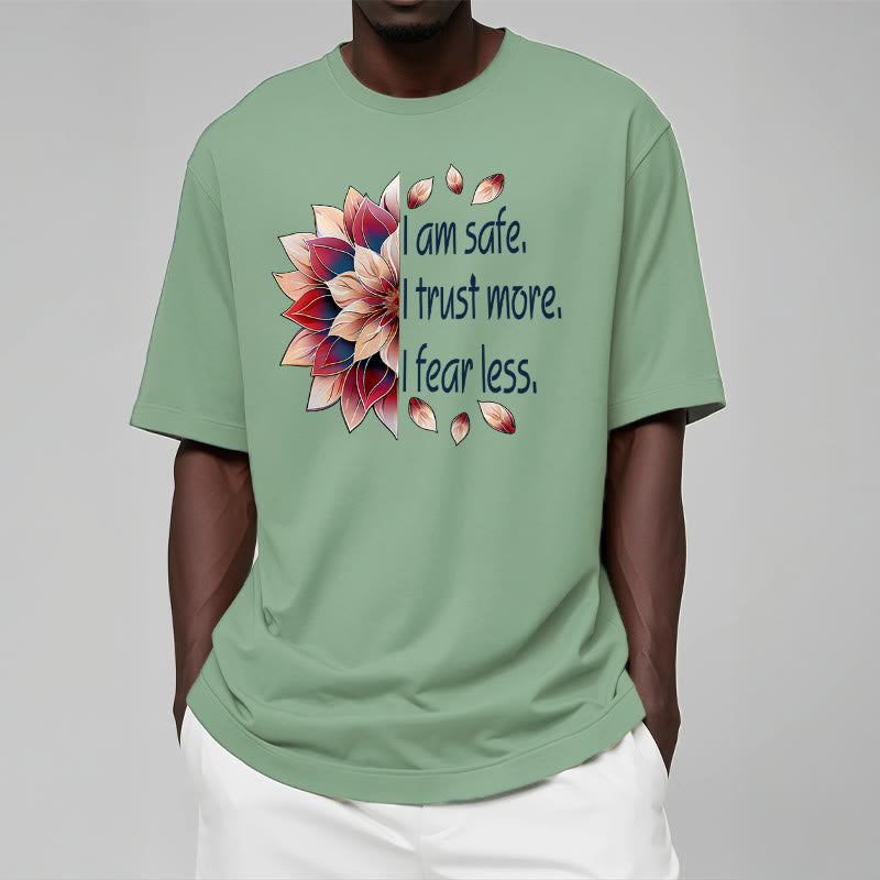 I Am Safe Tee T-shirt features a reassuring message designed to promote a sense of security and peace. Made from soft, breathable fabric, this t-shirt offers exceptional comfort. The calming design serves as a reminder to embrace safety and tranquility in your daily life. Perfect for those seeking inner peace, this tee combines comfort with a comforting message.
