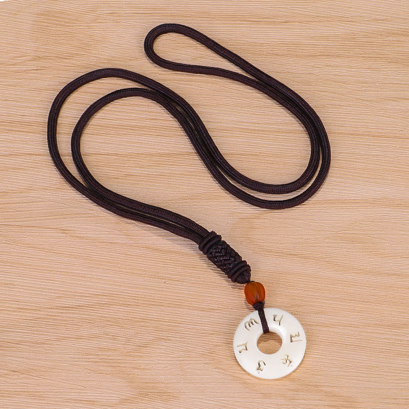 Buddha Stones Ivory Fruit Om Mani Padme Hum Engraved Protection Necklace Pendant Necklaces & Pendants BS 1