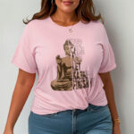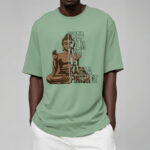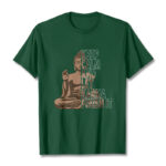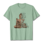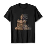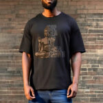 “Our design concept for this T-shirt blends traditional Buddhist elements with contemporary trends, aiming to inspire happiness and spiritual strength in those who wear it. Our goal is to create a T-shirt that not only honors Buddhist philosophy but also serves as a wearable piece of art that brings joy and a sense of connection to our community.”