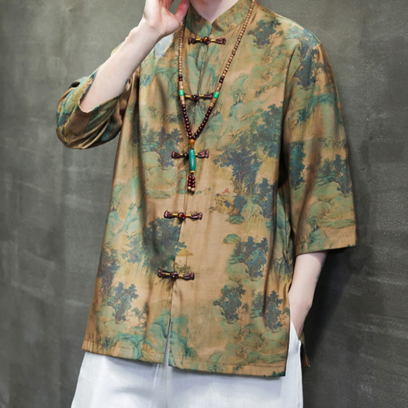 Landscape Chinese Dragon shirt combines a majestic dragon pattern with traditional Chinese elements. This three-quarter sleeve tee, made from breathable fabric, ensures comfort during meditation and spiritual practices. The landscape design symbolizes strength and wisdom, making it an ideal choice for men seeking inner peace and balance. Embrace the power and serenity of this unique shirt.💕