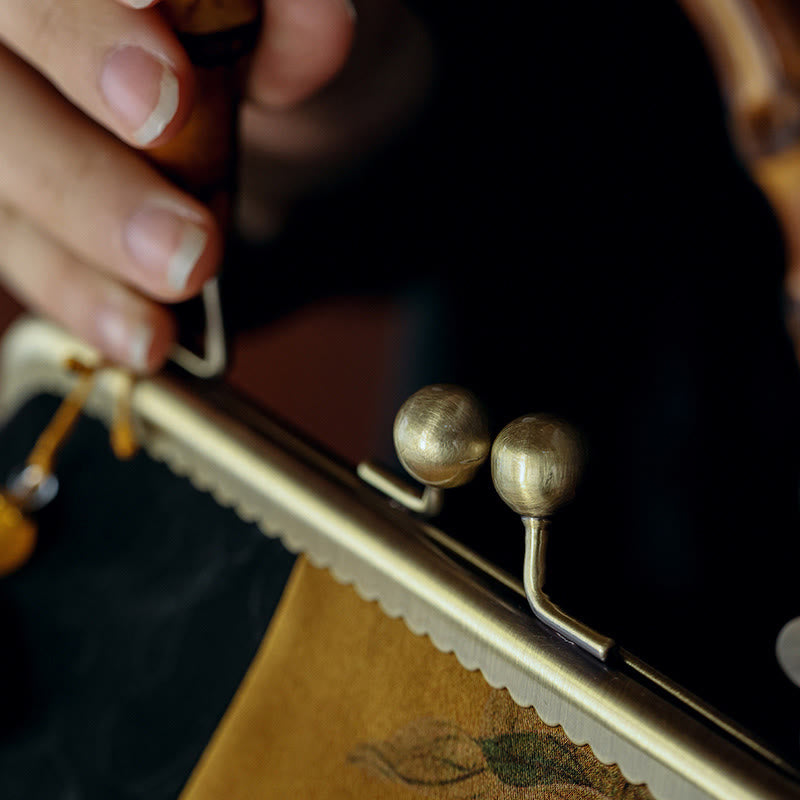 Leaves Bird Branches Persimmon Flowers handbag features an elegant design with birds, branches, and persimmon flowers, complemented by bamboo handles. This stylish handbag blends nature-inspired beauty with practical design, making it perfect for everyday use or special occasions. The intricate artwork and unique elements add a touch of charm and sophistication to your attire.💕